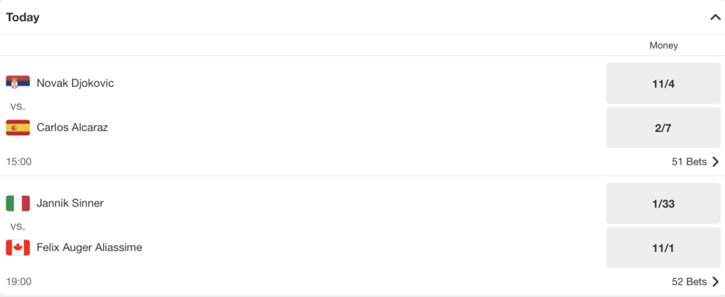 Trailing Auger-Aliassime 2-1 in career matches, Sinner recently defeated the Canadian 6-0, 6-2 at the Cincinnati Masters this Summer.