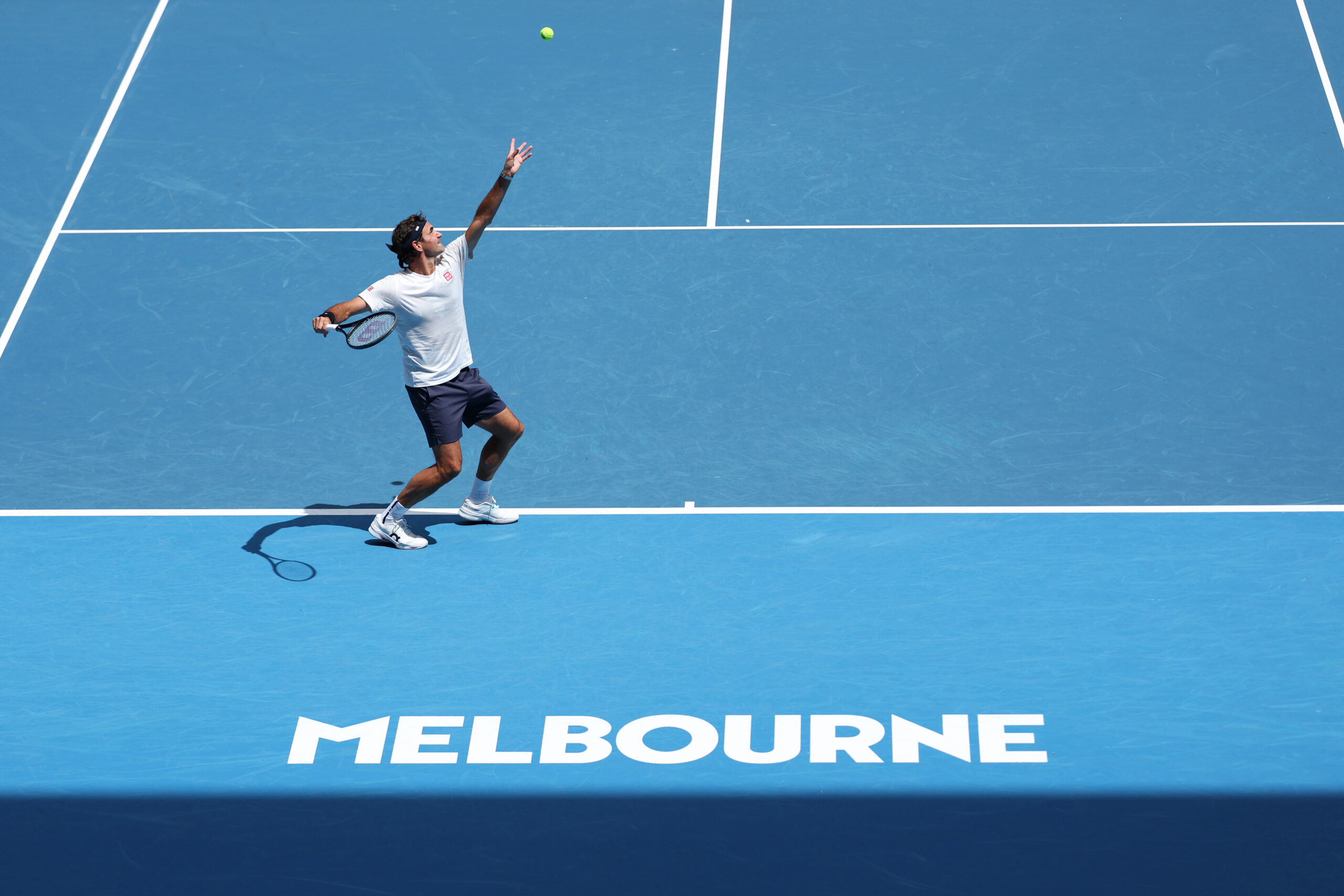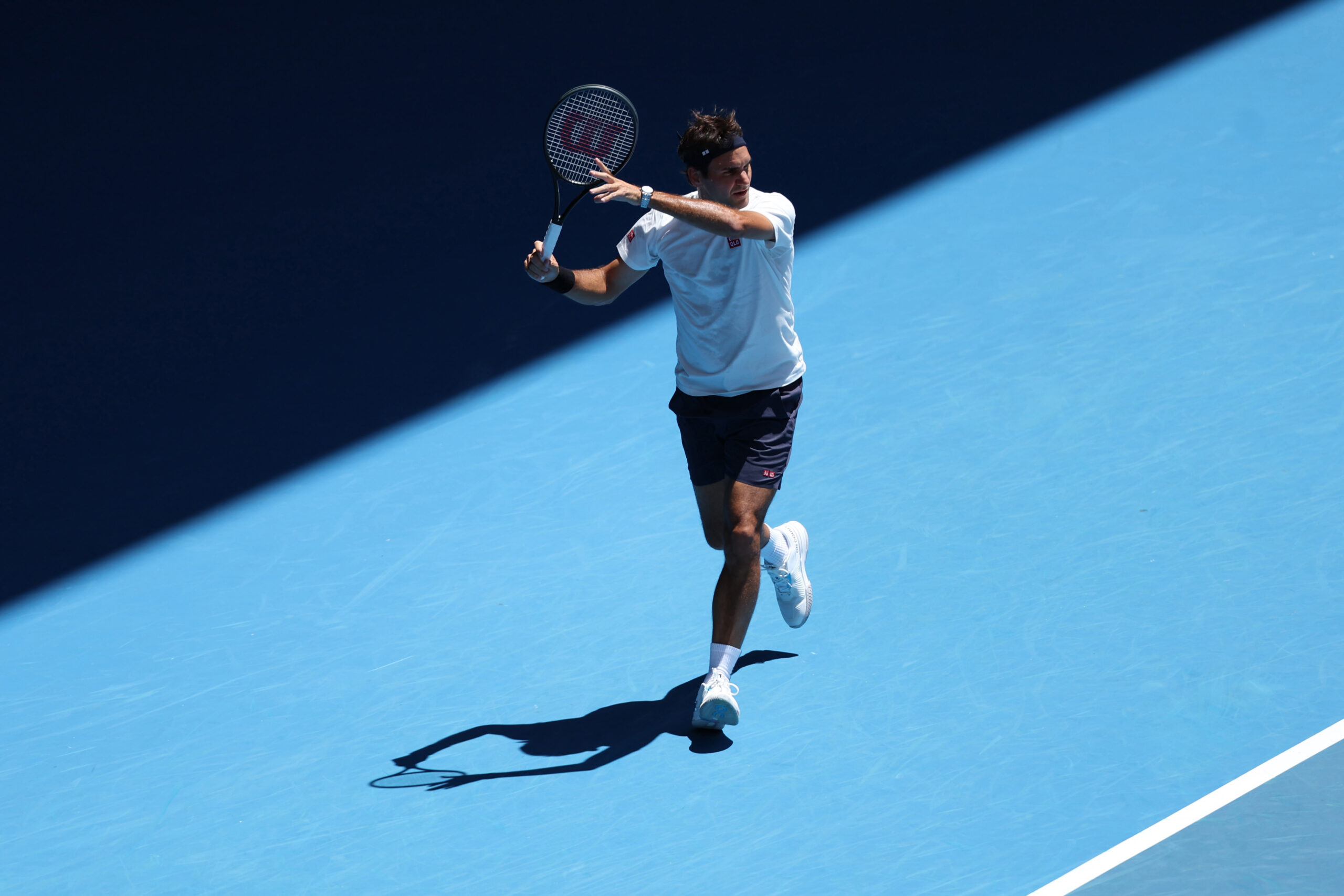 Roger Federer (Sui) in action during a practice session on day one of the Australian Open at Melbourne Park.